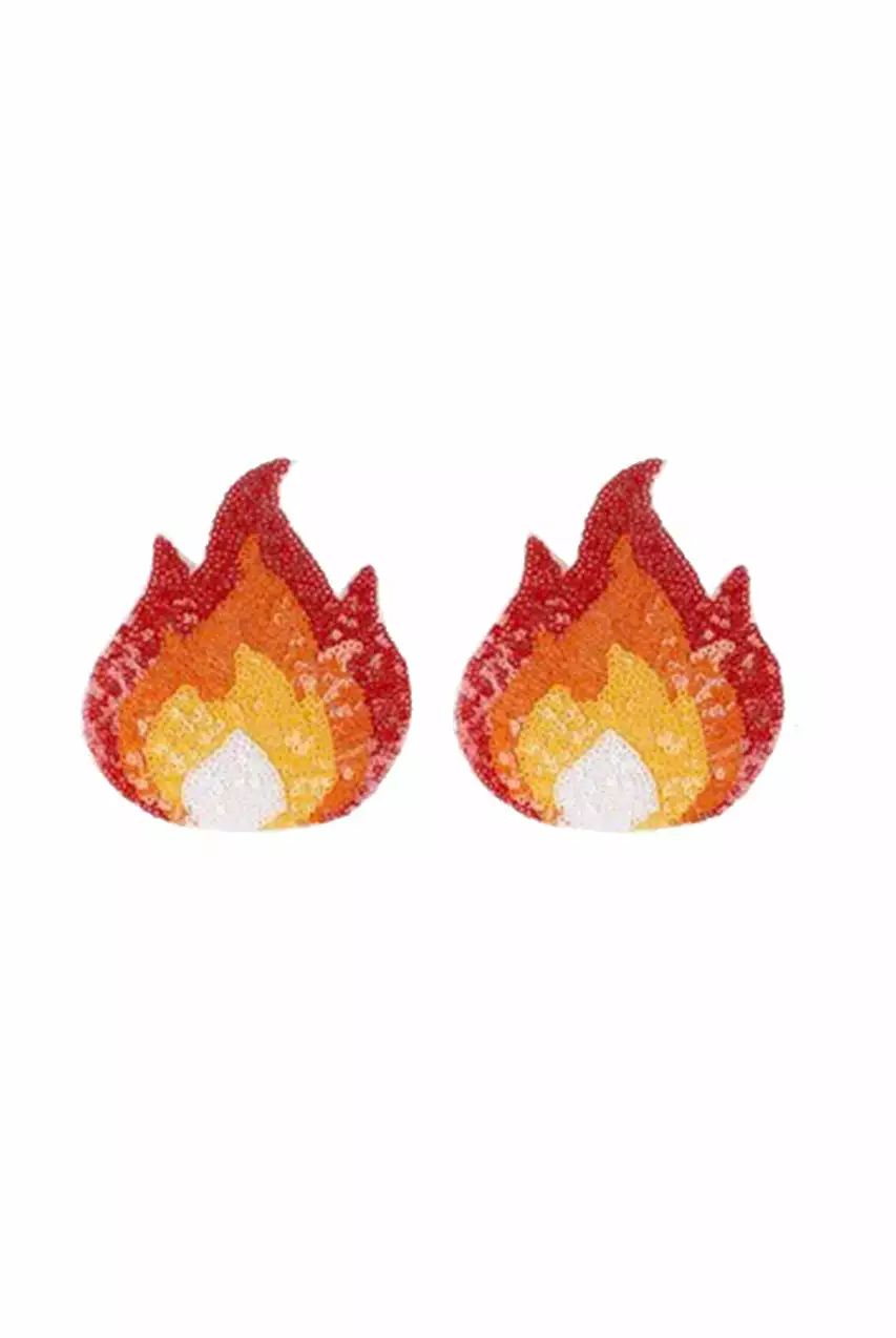 These red, orange, yellow, and white flame pasties feature fun glitter detail.