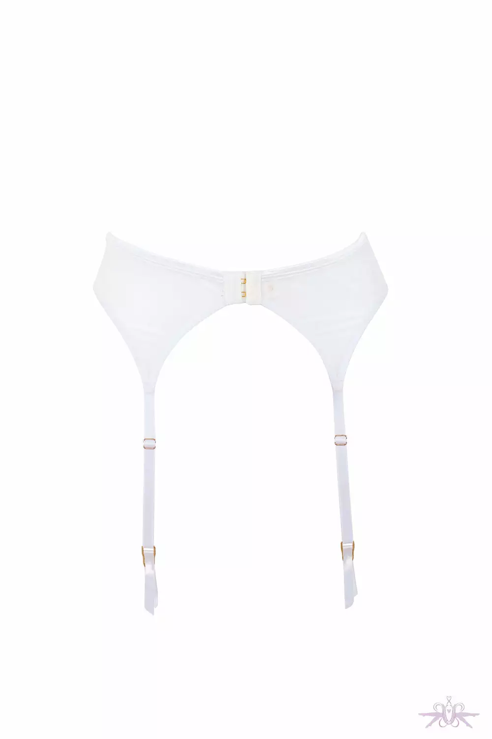 A beautiful white suspender belt from the Marseille collection at Bluebella. The intricate floral embroidery distinguishes the belt and the waist sculpts the body with grace and it is secured at the back with hook-and-eye fastenings. Style with the Marseille bra and briefs.