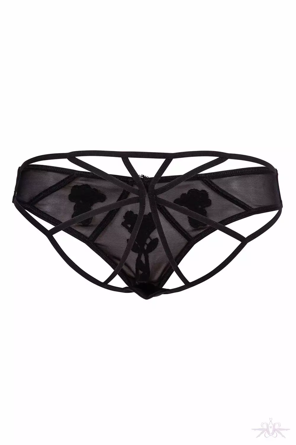 A delicate cut out guipure lace brief from the Nova collection at Bluebella. Featuring a semi open back with elasticated strap details and gold Bluebella tag on the waistband to the rear. Wear with the matching Nova suspender belt and nova bra for a luxurious lingerie look.