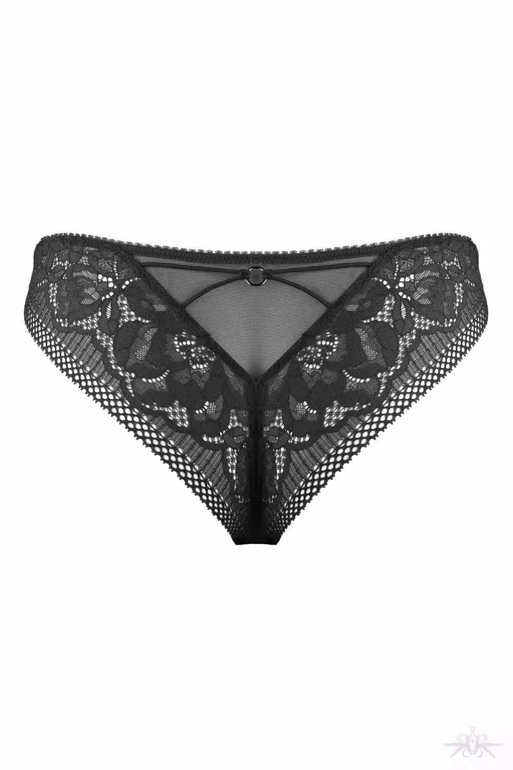 A seductive brazilian knicker from the Rock DJ collection at Jolidon. This sheer lace braziian is delicate and alluring with its sheer lace mesh and tulle panelling. The v-shape on the rear enhances the derriere beautifully. Matching items are also available.