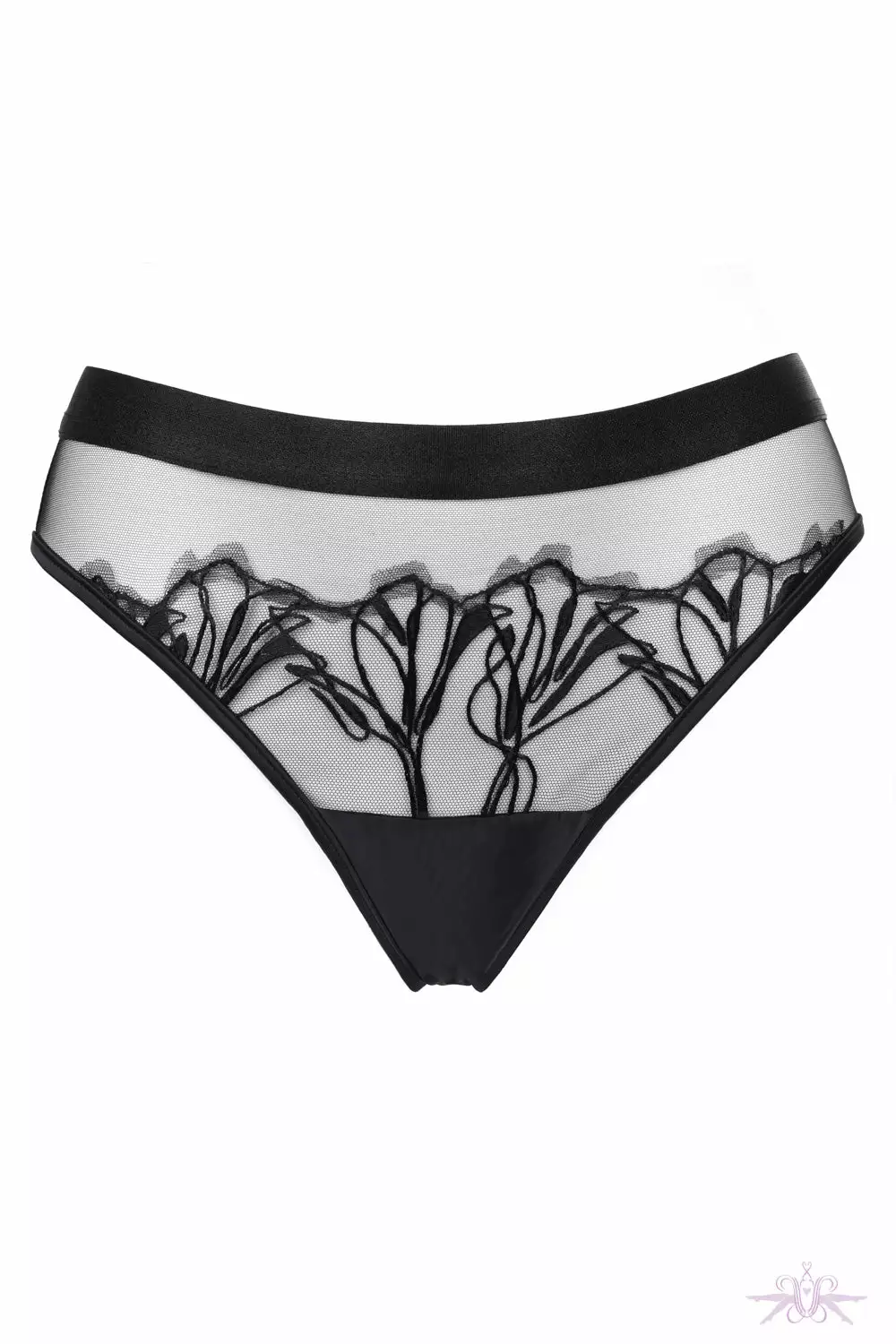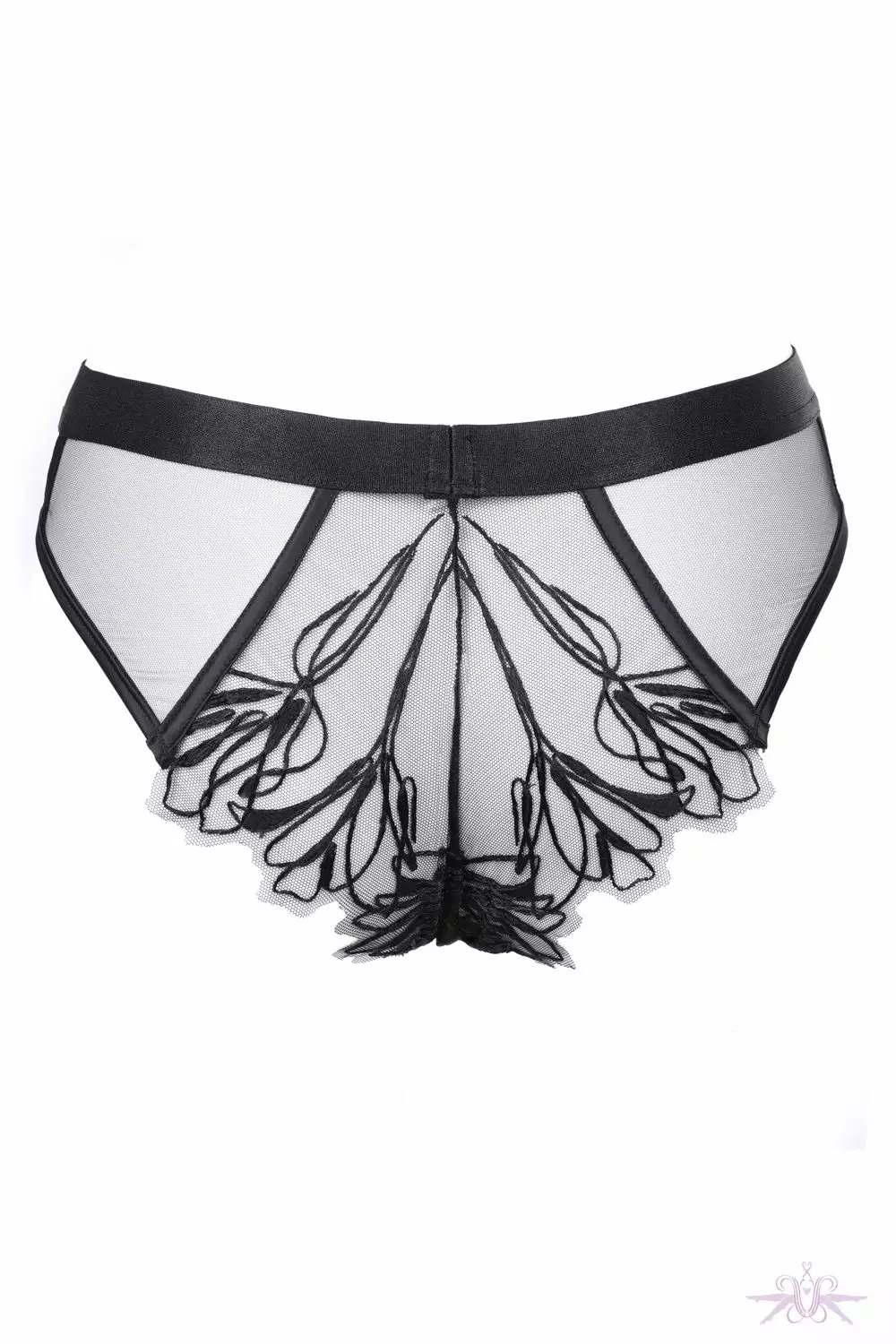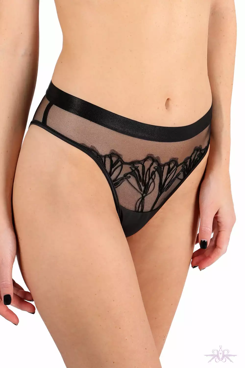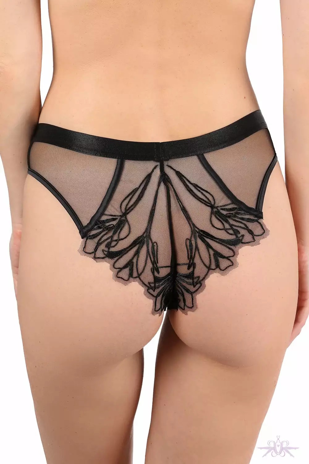 A seductive brazilian knicker from the Supreme collection at Jolidon. This sheer lace brazilian is so decadent with its sheer floral lace tulle panelling. The fluted lace edge to the rear enhances the derriere beautifully. Matching items are also available.