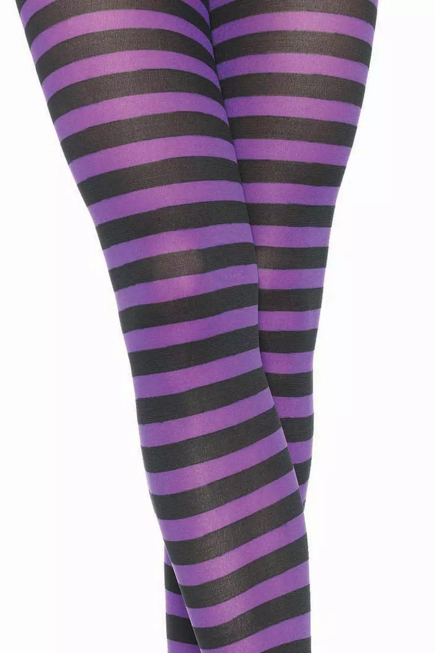 Make a statement with your legs featuring these Black & Purple Striped Pantyhose with opaque nylon stretch fabric and pantyhose with feet.