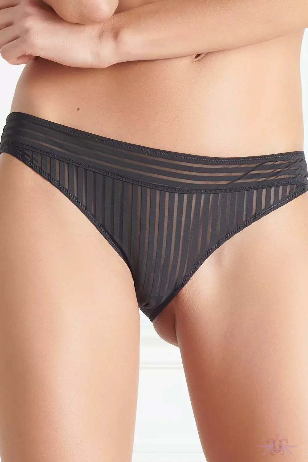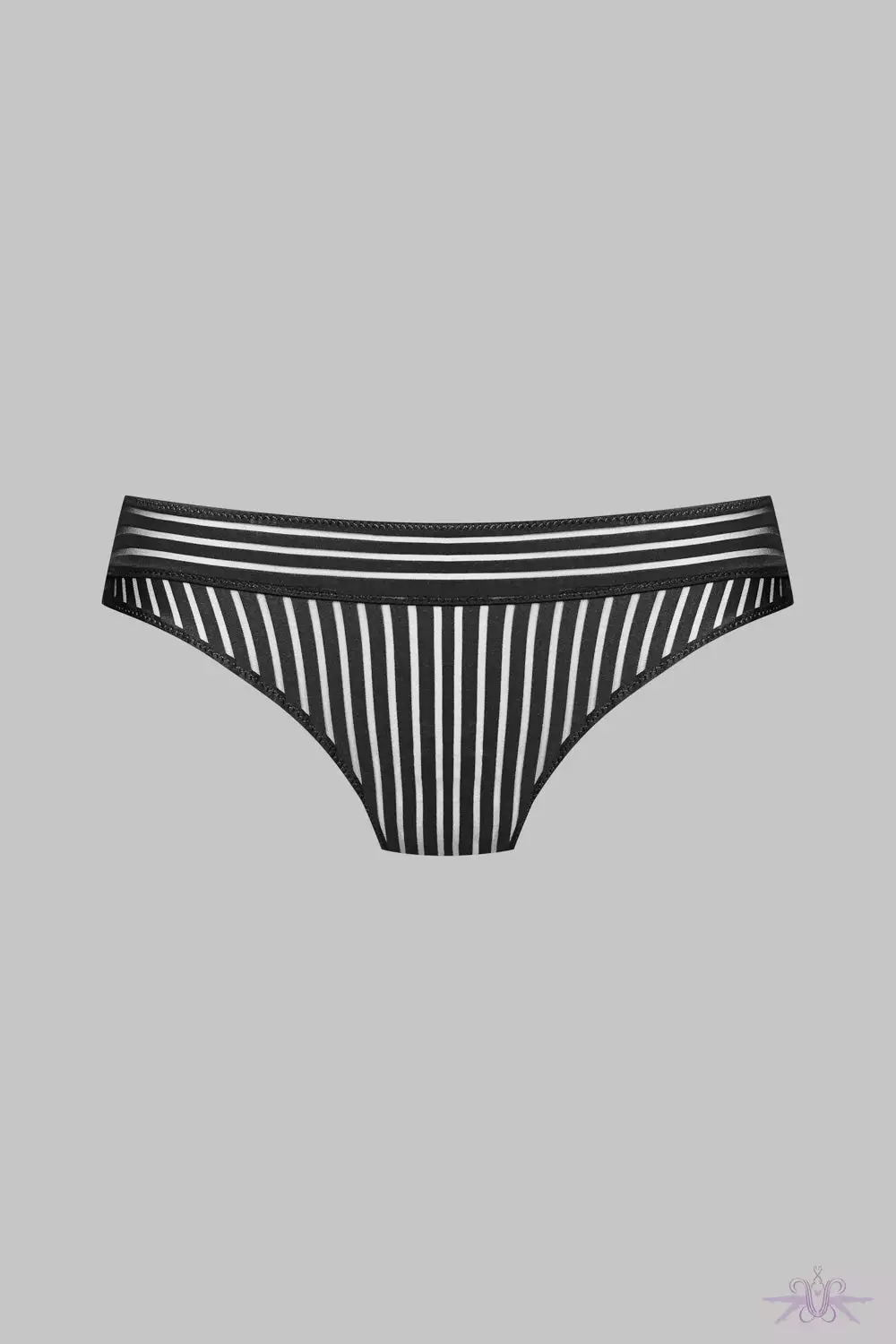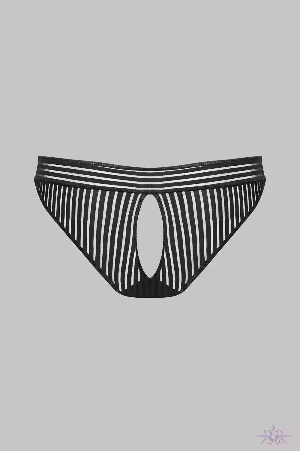 An alluring Brief from the Bande à Part collection from luxury lingerie brand Maison Close. This super soft brief has an open keyhole to the rear to subtly reveal the derriere and is made from soft light fabric with graphic stripe detailing. This versatile piece can be worn day or night. Matching items available.