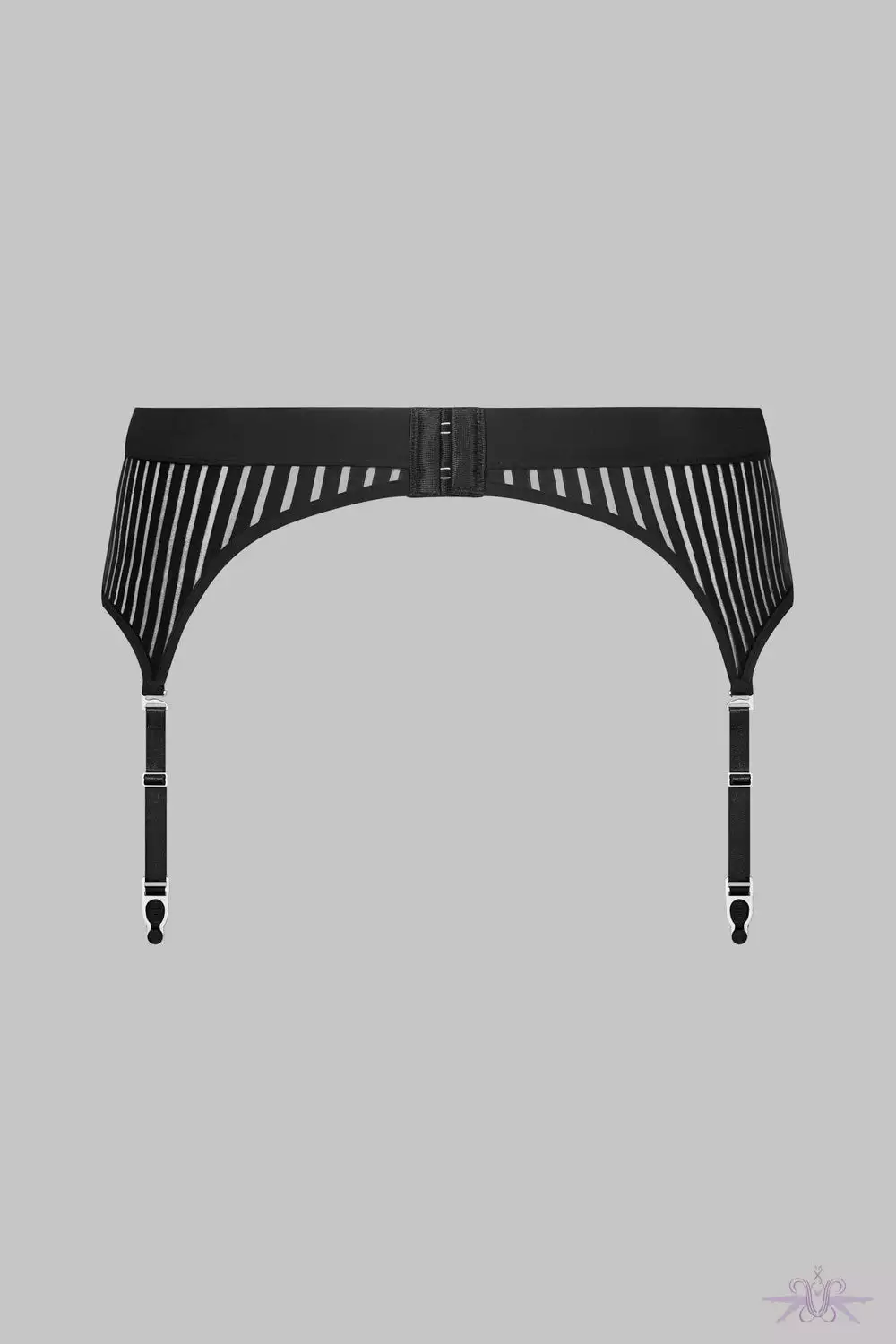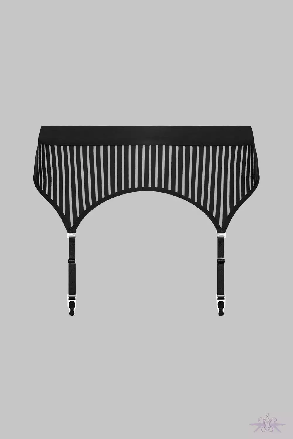 A sensual suspender belt that is playfully sheer from the Bande a Part collection at Maison Close. The soft and light fabric fits like a second skin with graphic vertical lines. Matching items are available.