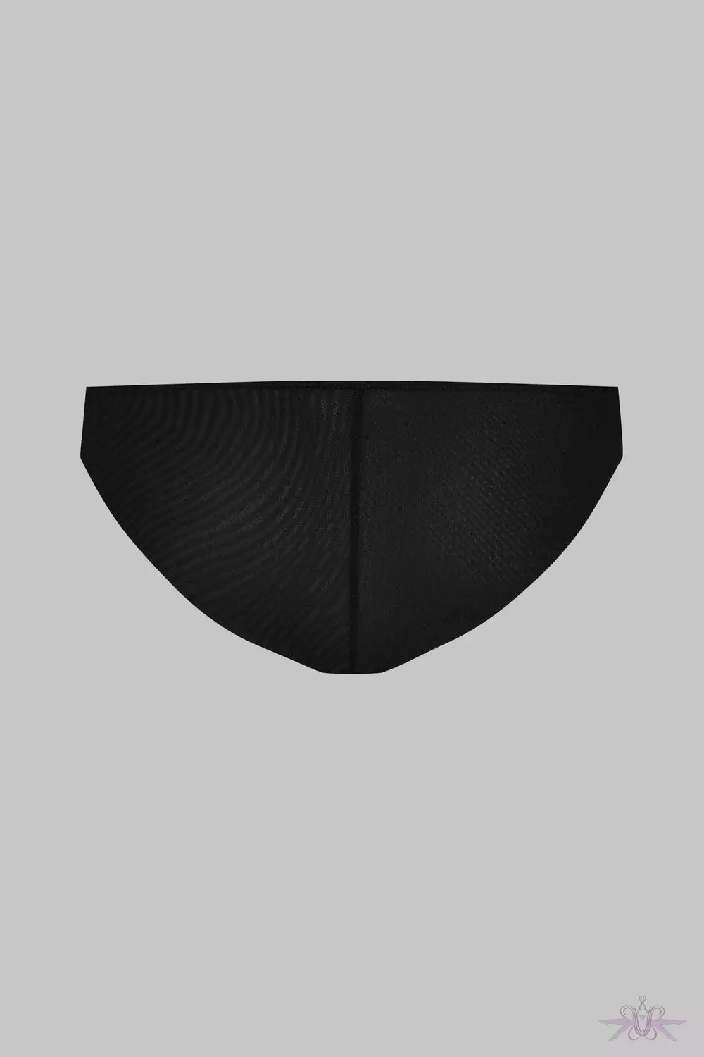 A delightful black panty from the Corps a Corps collection at Maison Close. It features soft tulle with a sheer iridescent appearance.
