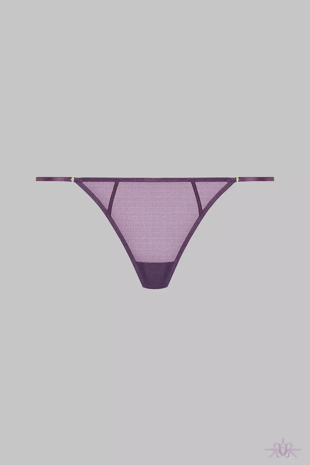 A sensual mini thong in sheer mesh from Maison Close. The delicate elastic bands connected by a golden ring in back add a glamorous touch.