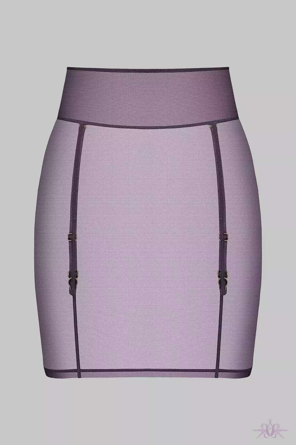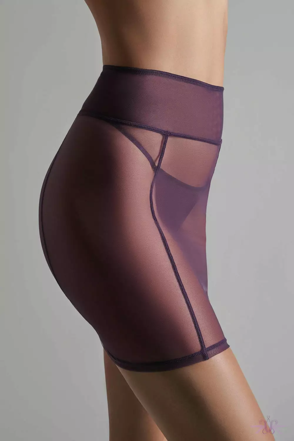 A stunning short garter skirt in sheer mesh from the new collection at Maison Close. This seductive skirt has a snug fit and good under clothing. The cross seams coordinate with the removable garters. A gorgeous slip skirt to wear over other pieces in the collection.