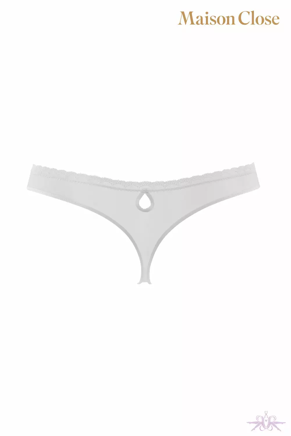 This gorgeous white thong from French designers Maison Close, is such a good choice for everyday wear. It’s sensualness matches perfectly with the Naked breast Bodice.