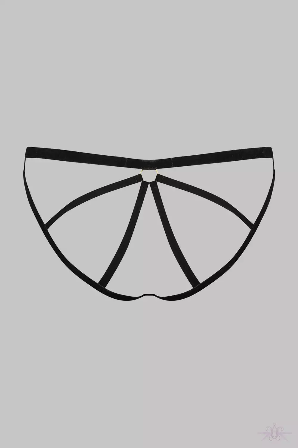 A luxurious velvet open Panty from the Le Fetiches Collection at Maison Close. The panty is adorned with an irresistible golden jewel at the front and can be worn with other le fetiches items to complete the look.