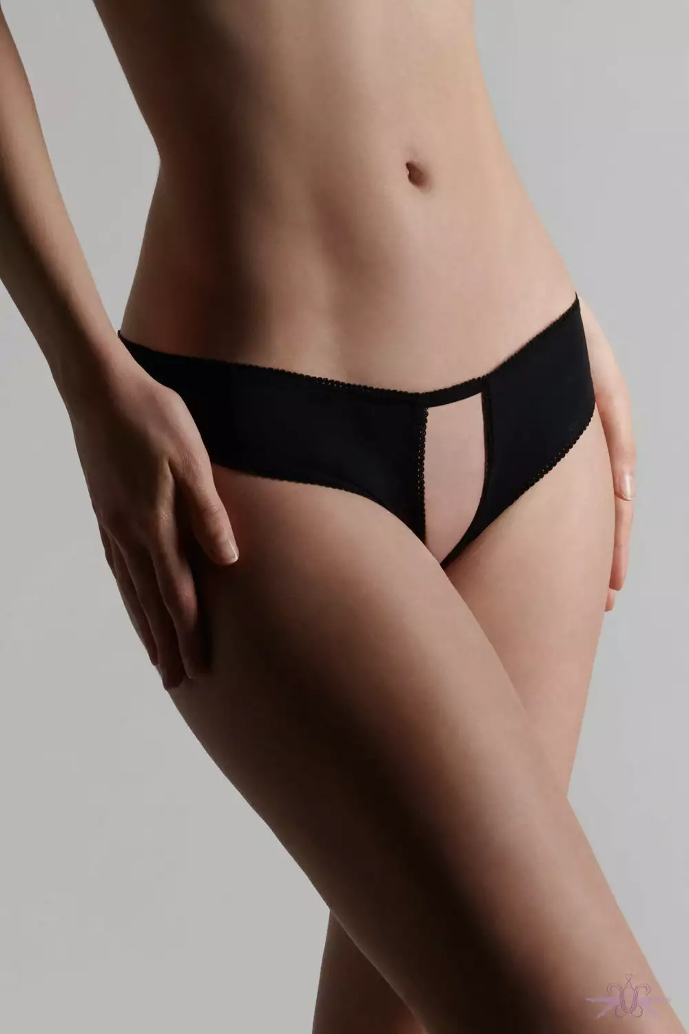 This lovely open panty from Maison Close is so soft and easy to wear. It has open sections to the front and rear. Matching cupless bra and garter belt are available.