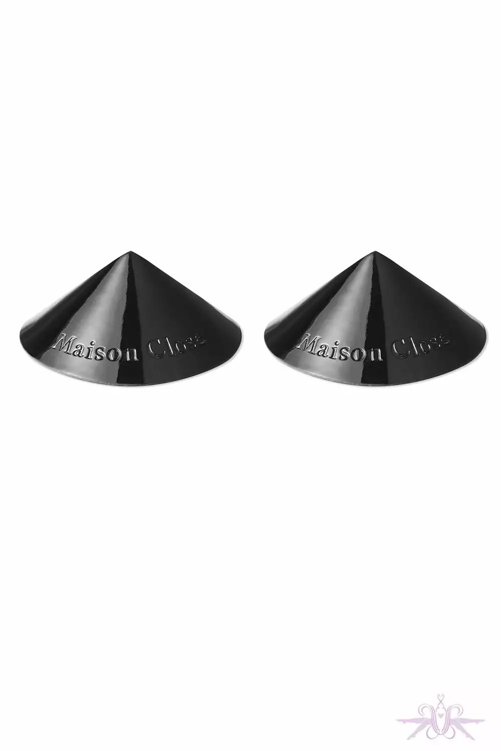 Adorn the breast with these gorgeous black nipple covers for a perfectly provocative look. Match with the Chambre Noire collar and thong.