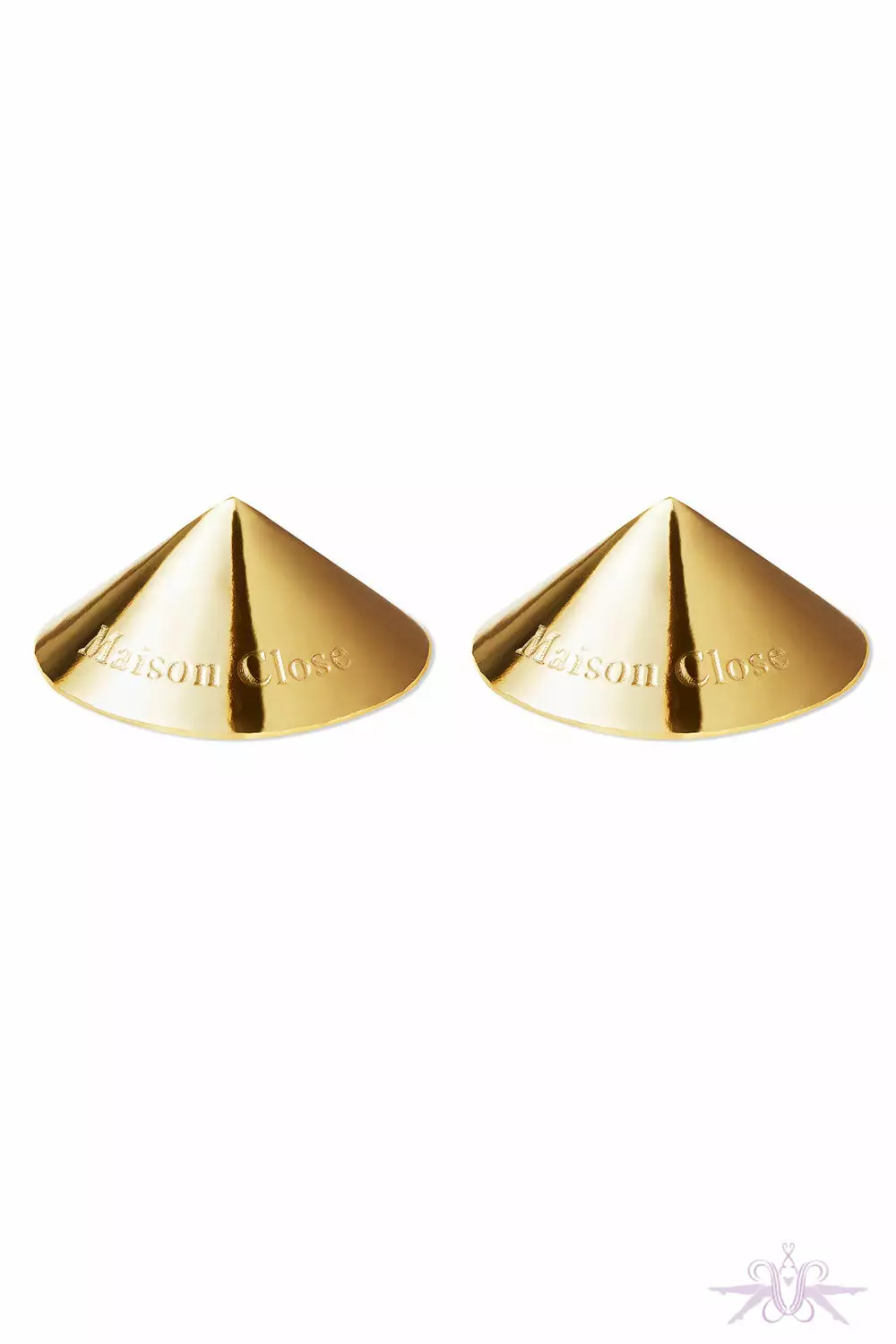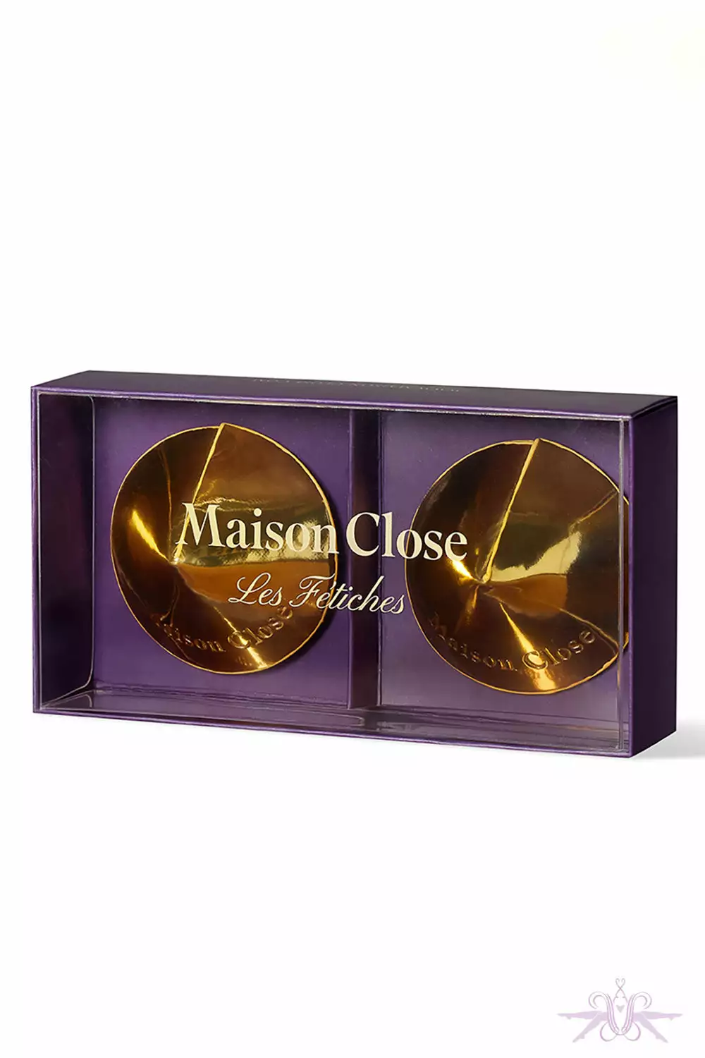 Adorn the breast with these gorgeous gold nipple covers for a perfectly provocative look. Match with the Chambre Noire collar and thong.