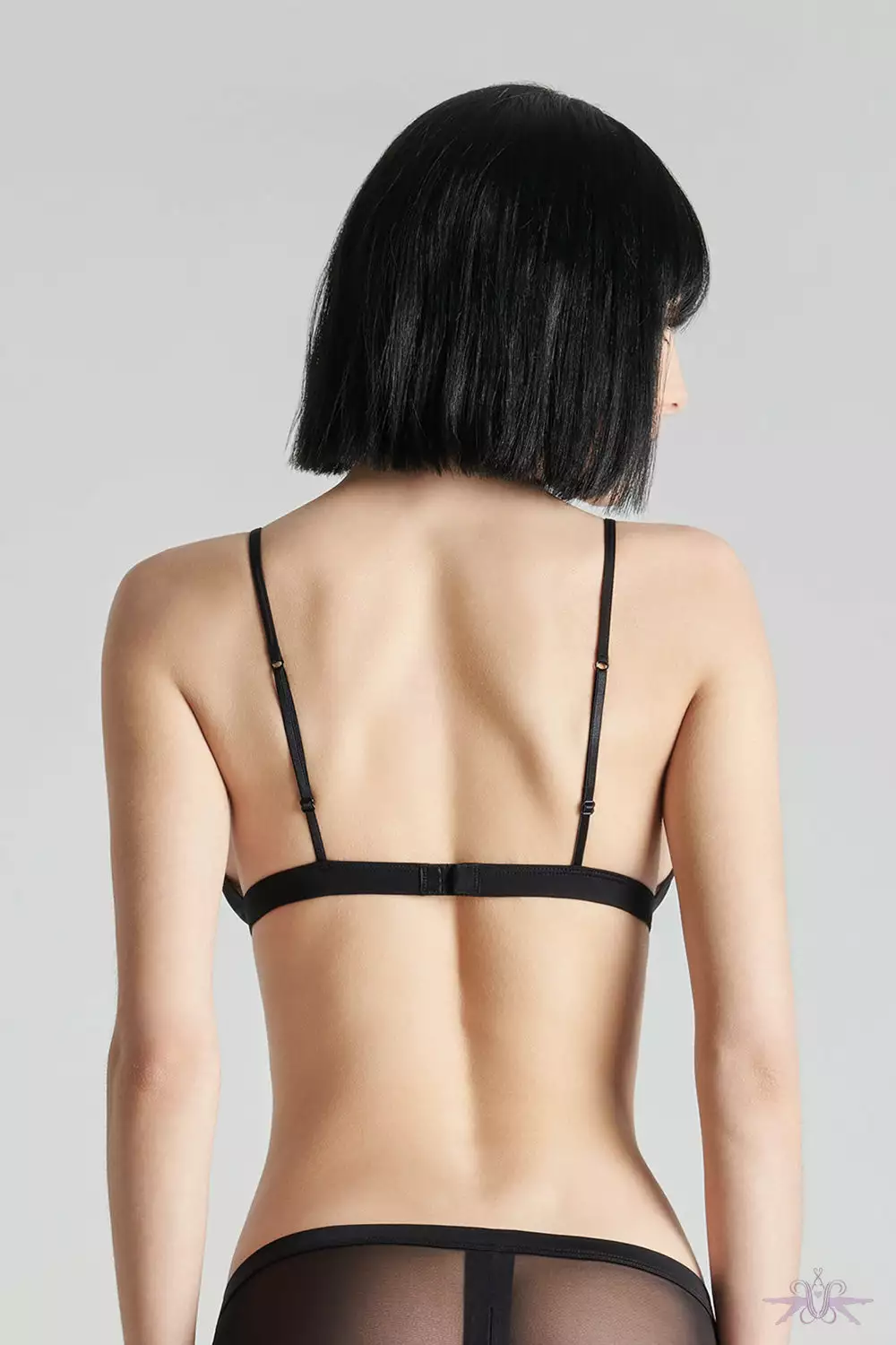 A beautiful ultra sheer triangle bra with elastic and adjustable shoulder straps. It is part of the Pure Tentation collection from French designers, Maison Close. Matching thong, panty and dress are also available.