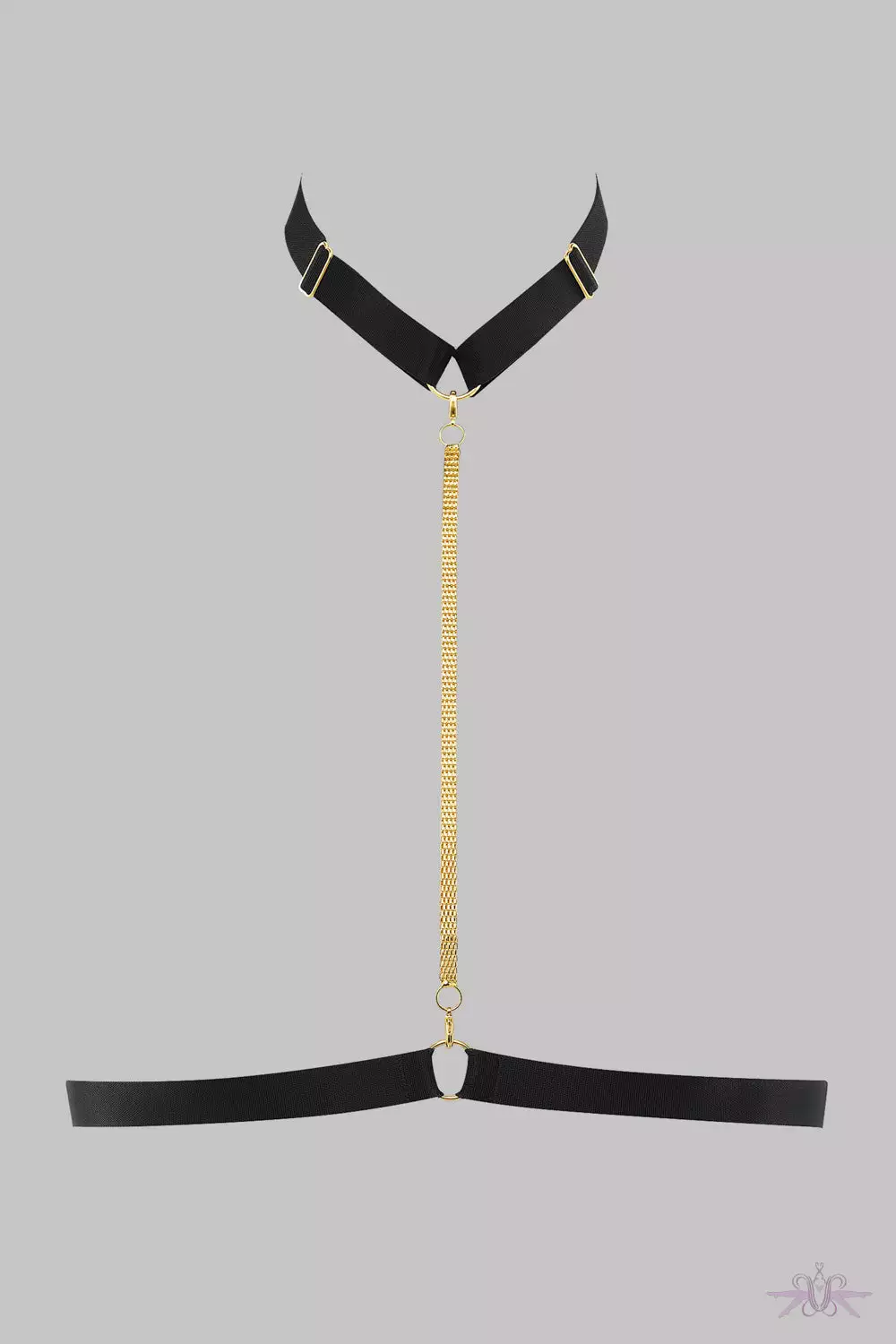 A striking harness that can be worn both as lingerie or as a fashion accessory. The Maison Close Tapage Nocturne Harness can be combined with the entire Maison Close Tapage Nocturne lingerie collection.