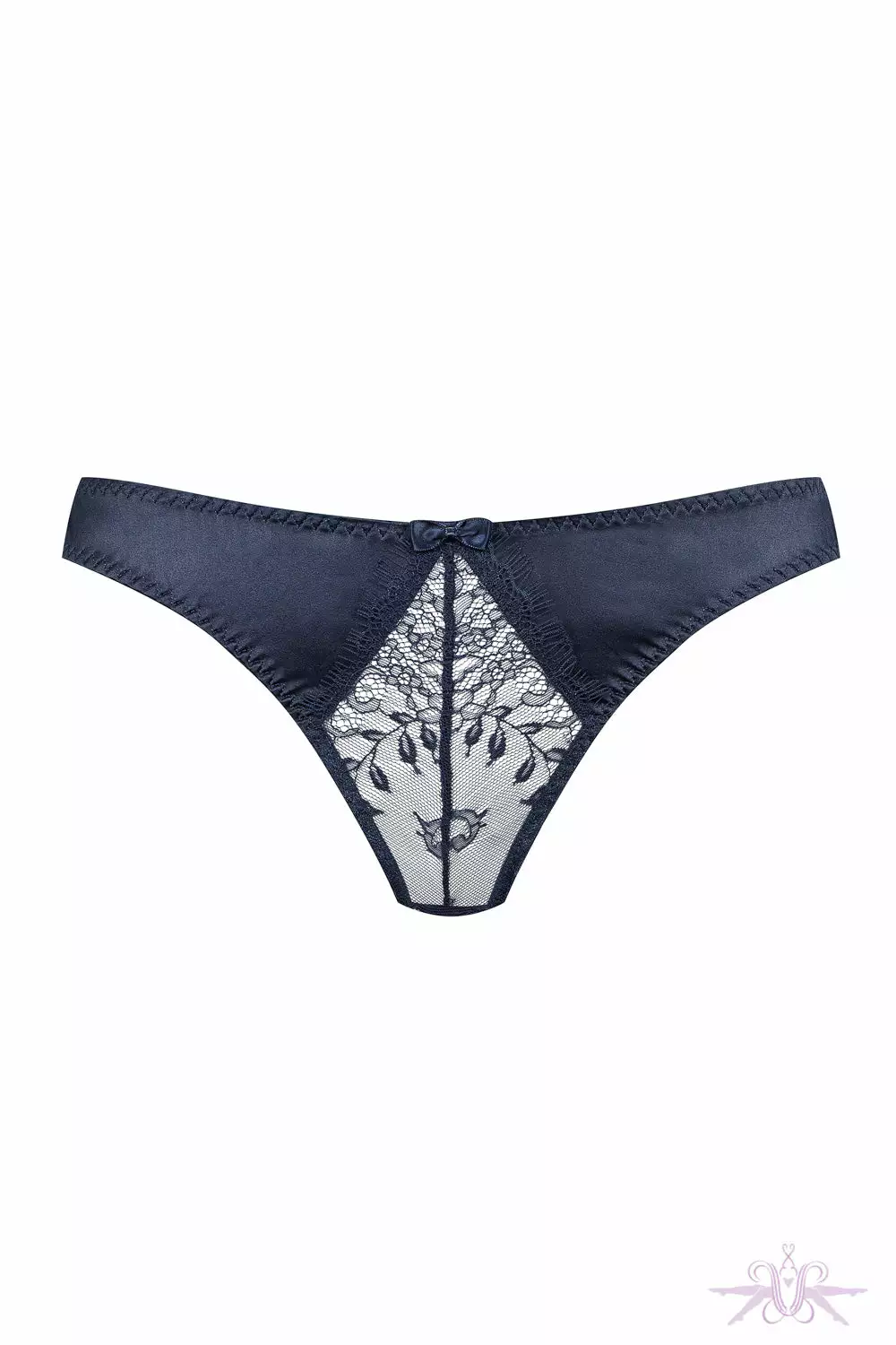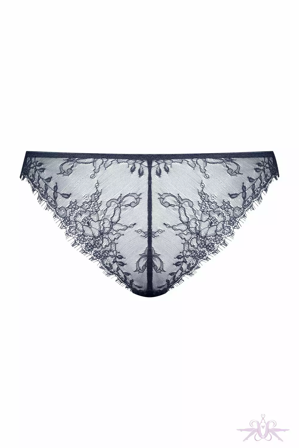 A beautiful delicate satin and lace brief from the luxurious Villa Satine Blue collection at Maison Close. This Brief is made from gorgeous blue satin, with soft seductive full lace at the rear and adorned with bow at the front. Matching triangle bra and garter belt are also available.