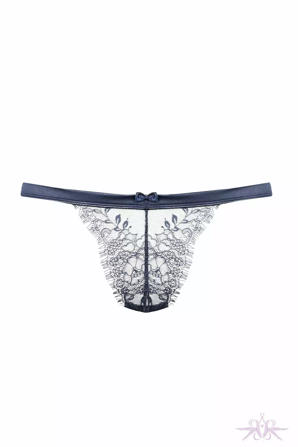 An alluring mini thong from the Villa Satine collection at Maison Close. The lace transparent front coupled with the silky satin to the edges and back make it so refined and comfortable to wear. Matching triangle bra and garter belt are also available.