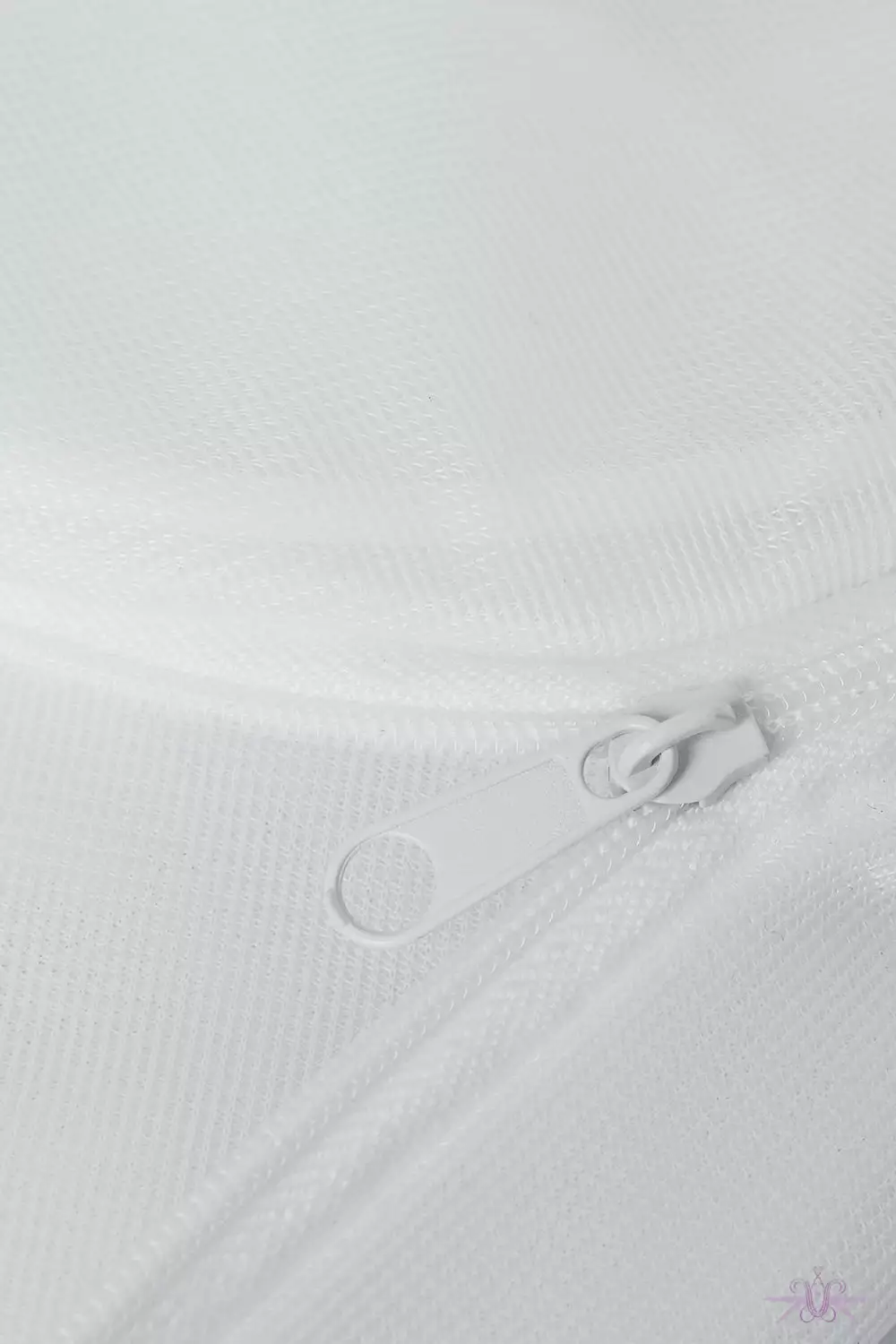 Soft, stretchy mesh wash bag. Protects your lingerie in the washing machine. Rectangular design for all types of underwear with zip fastening.