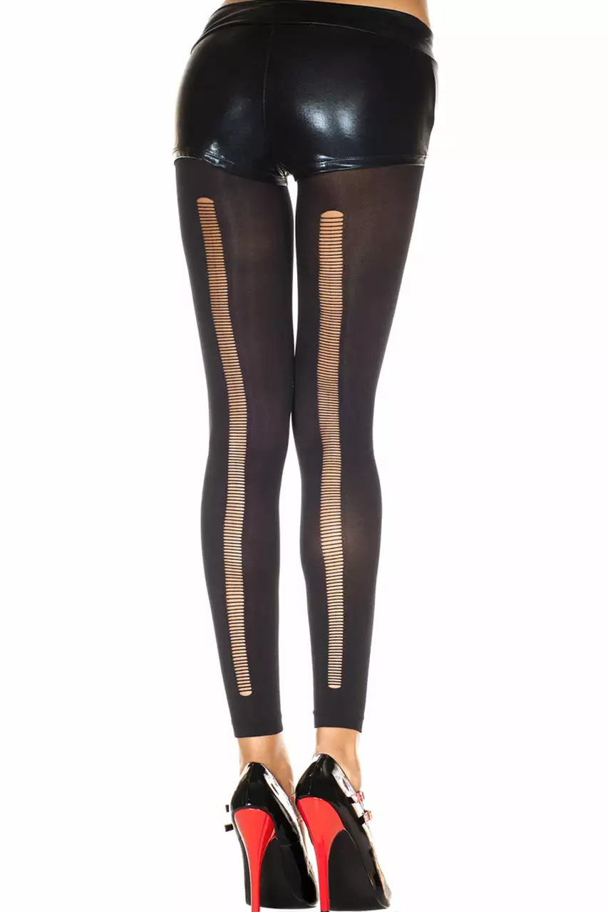 These Slashed Back Footless Tights will bring out your inner biker chick. Features black opaque pantyhose with a mid-rise waist, shredded backs, and footless design. *Shorts not included.