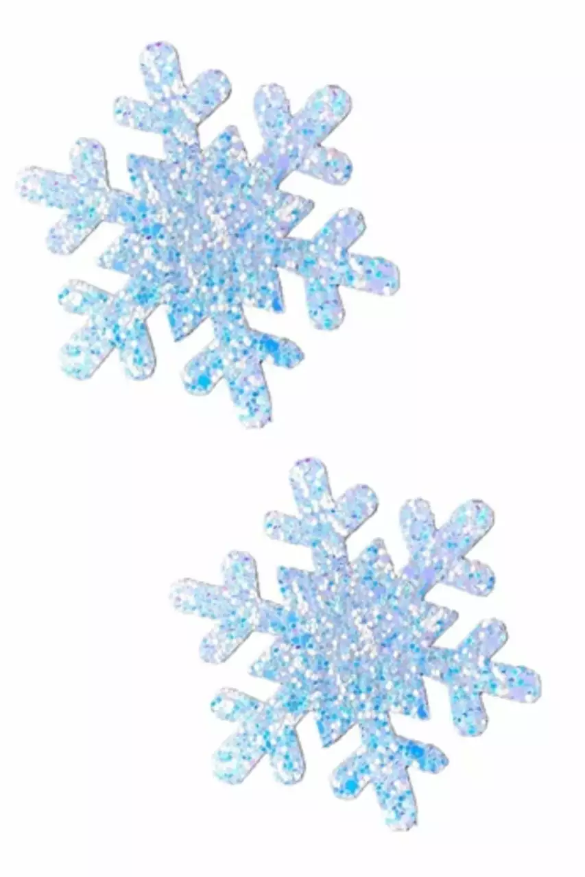 Kris Kringle those nipples with these Chunky Glitter Snowflake Christmas Nipple Pasties! Features a pair of iridescent white glitter snowflake Christmas nipple pasties with latex-free, medical grade adhesive. Just peel-and-stick on clean dry skin!