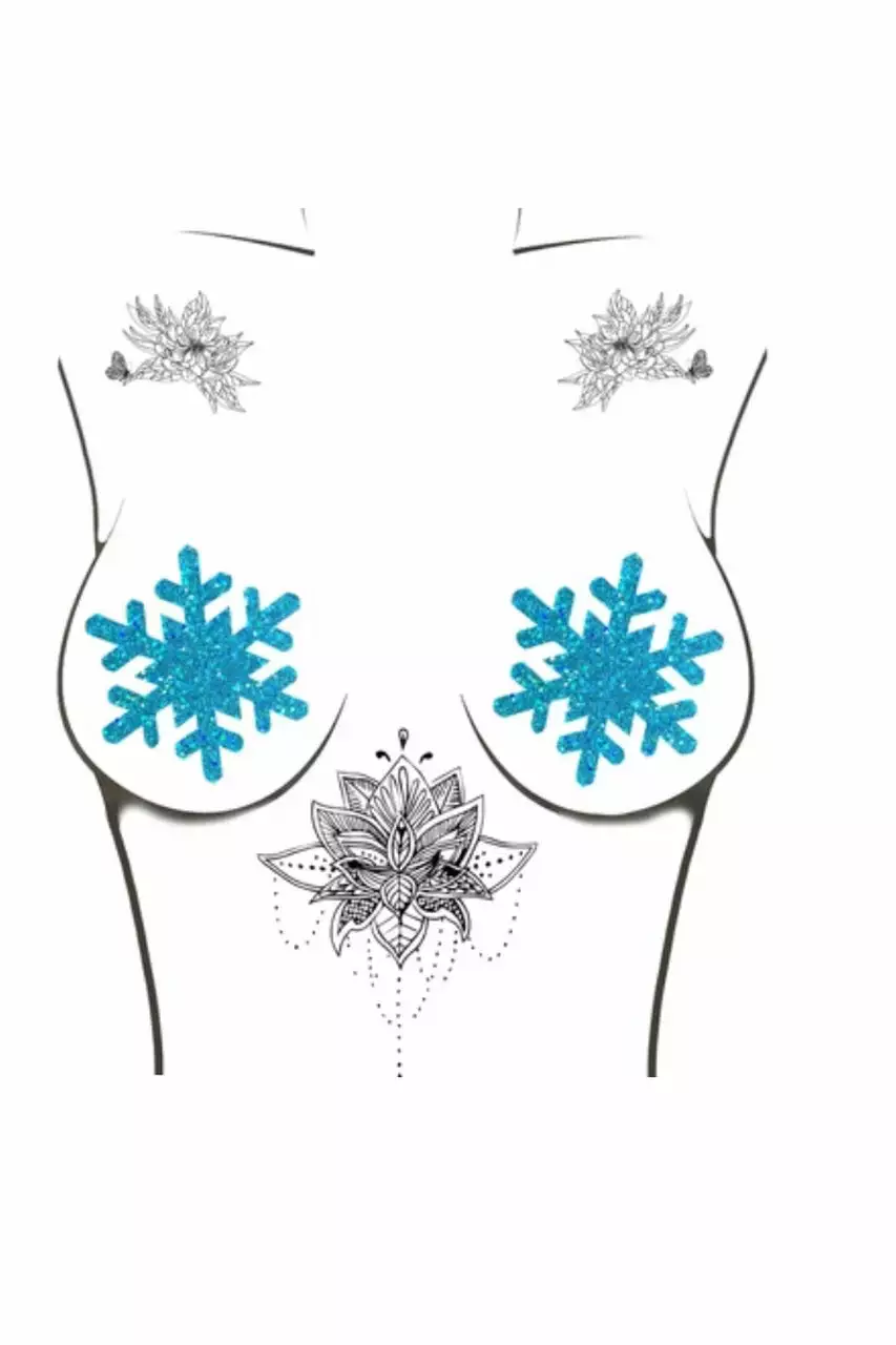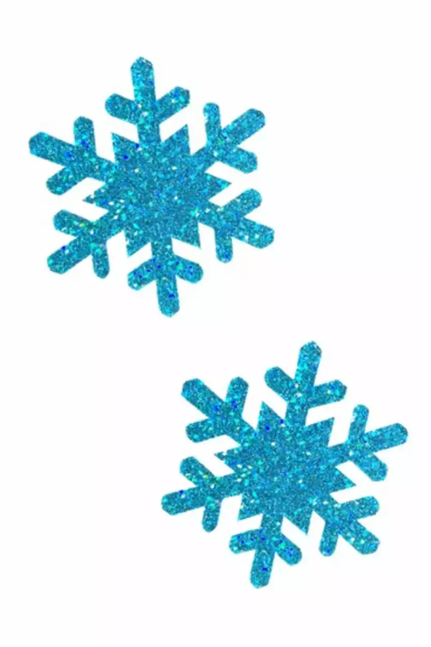 It’s officially hard nipple season with these Turquoise Glitter Snowflake Christmas Nipple Pasties! Features a pair of blue glitter snowflake Christmas present nipple pasties with latex-free, medical grade adhesive. Just peel-and-stick on clean dry skin!