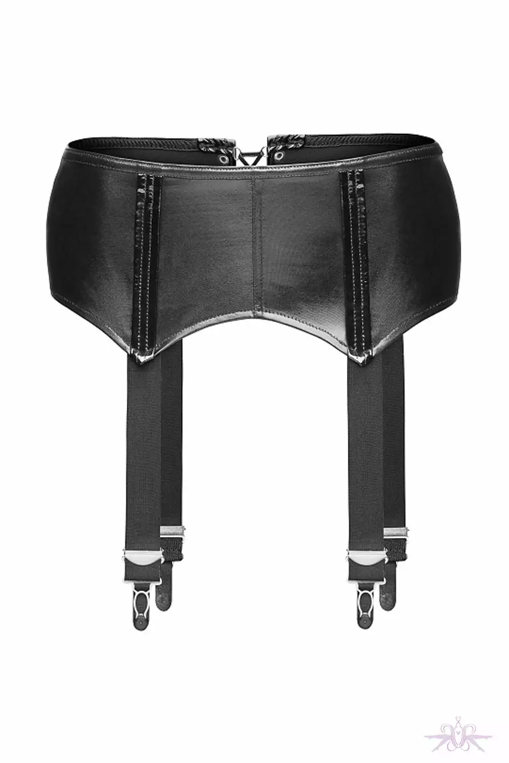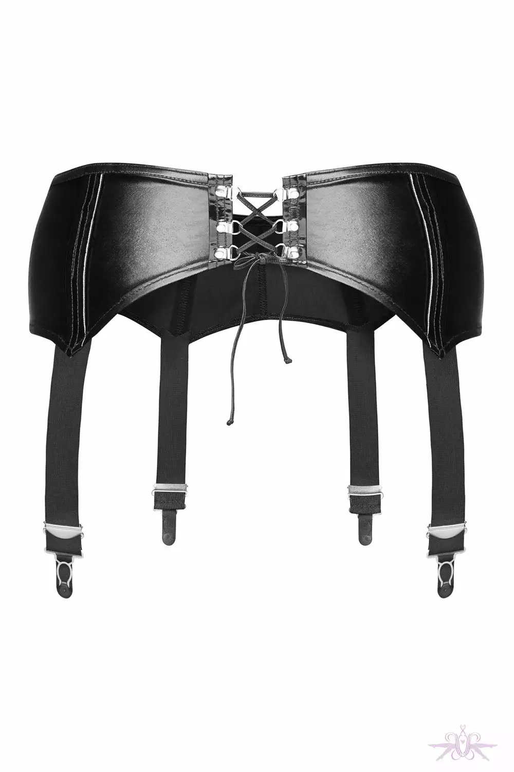 A seductive suspender belt from Noir Handmade that will surely entice the senses. This garter belt has erotic lacing to the rear which is eye catching and unusual. The four adjustable suspender straps are elasticated and the shiny wetlook faux leather material is alluring and gives good support.