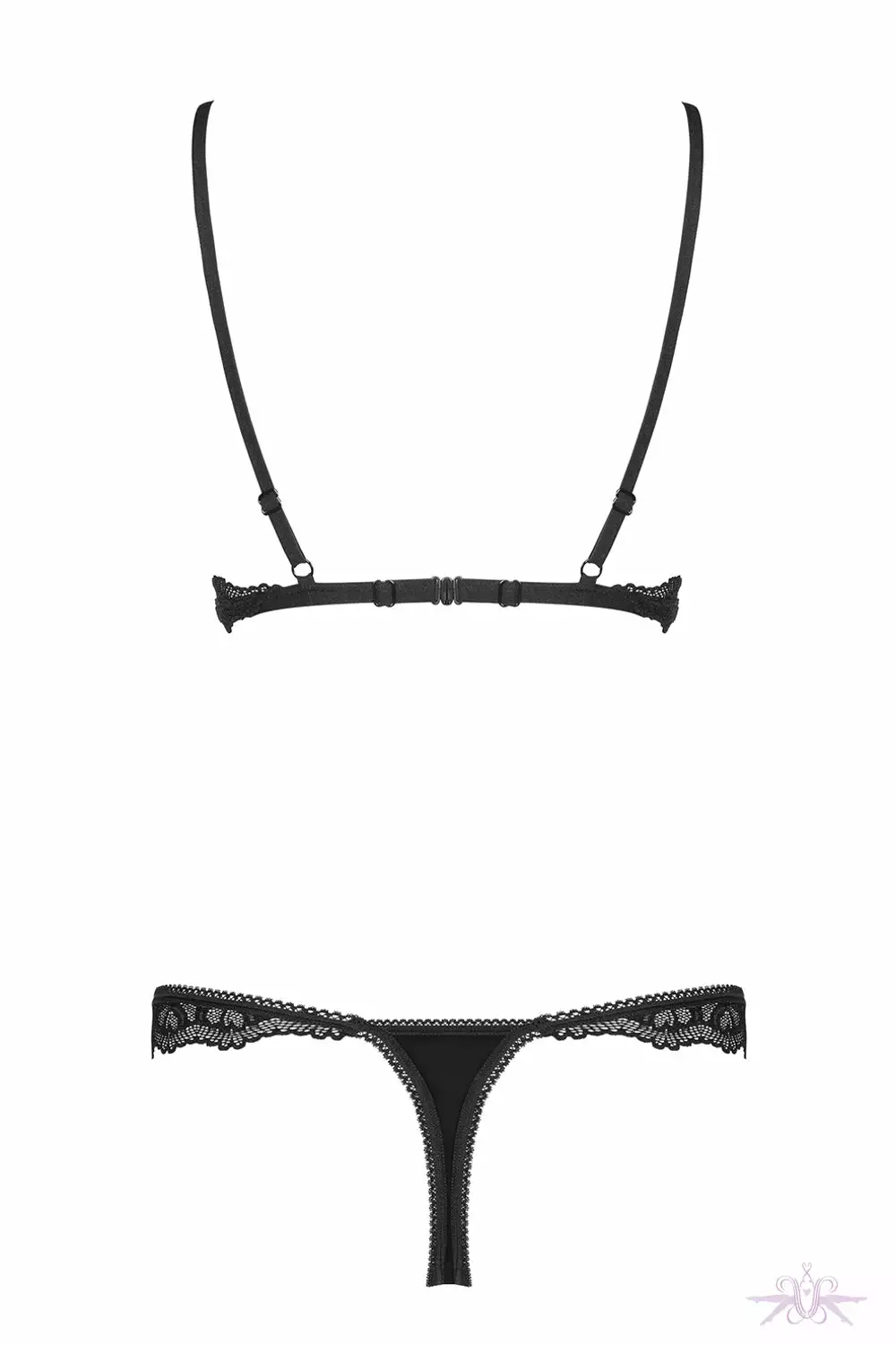 Gorgeous tempting lace and jewels adorn this stunning two piece set. The delicate straps are adjustable and scalloped lace edging on the bra and thong complete this set beautifully. Matching Stockings available.