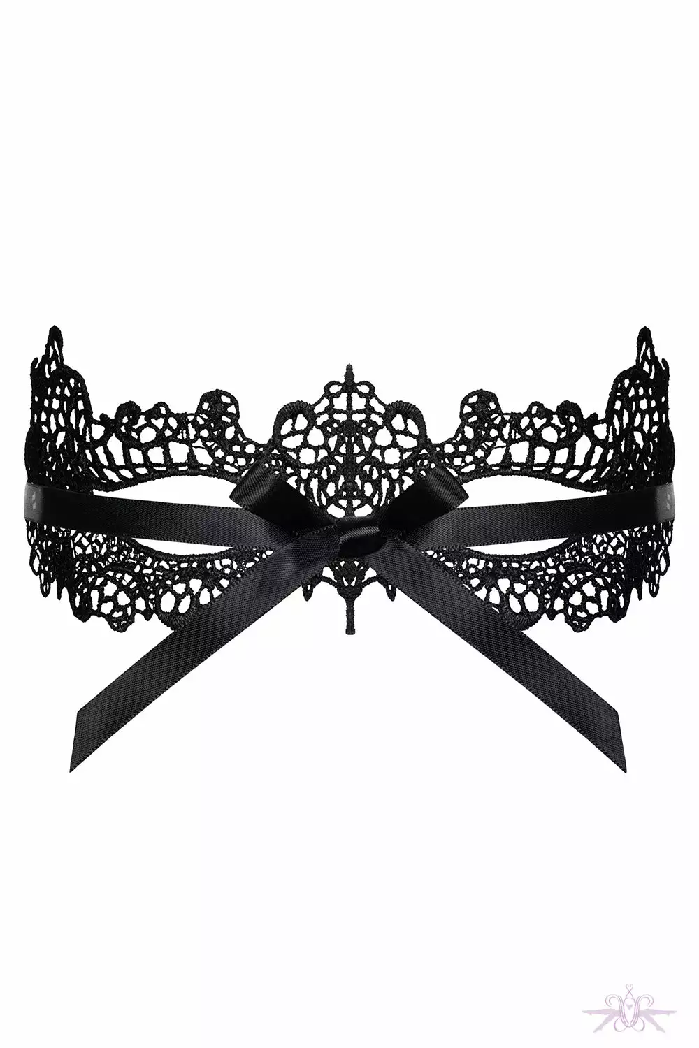 A feminine guipure lace mask from obsessive. Comprising Guipure lace with satin ribbon ties. This coquettish item is sure to tempt.