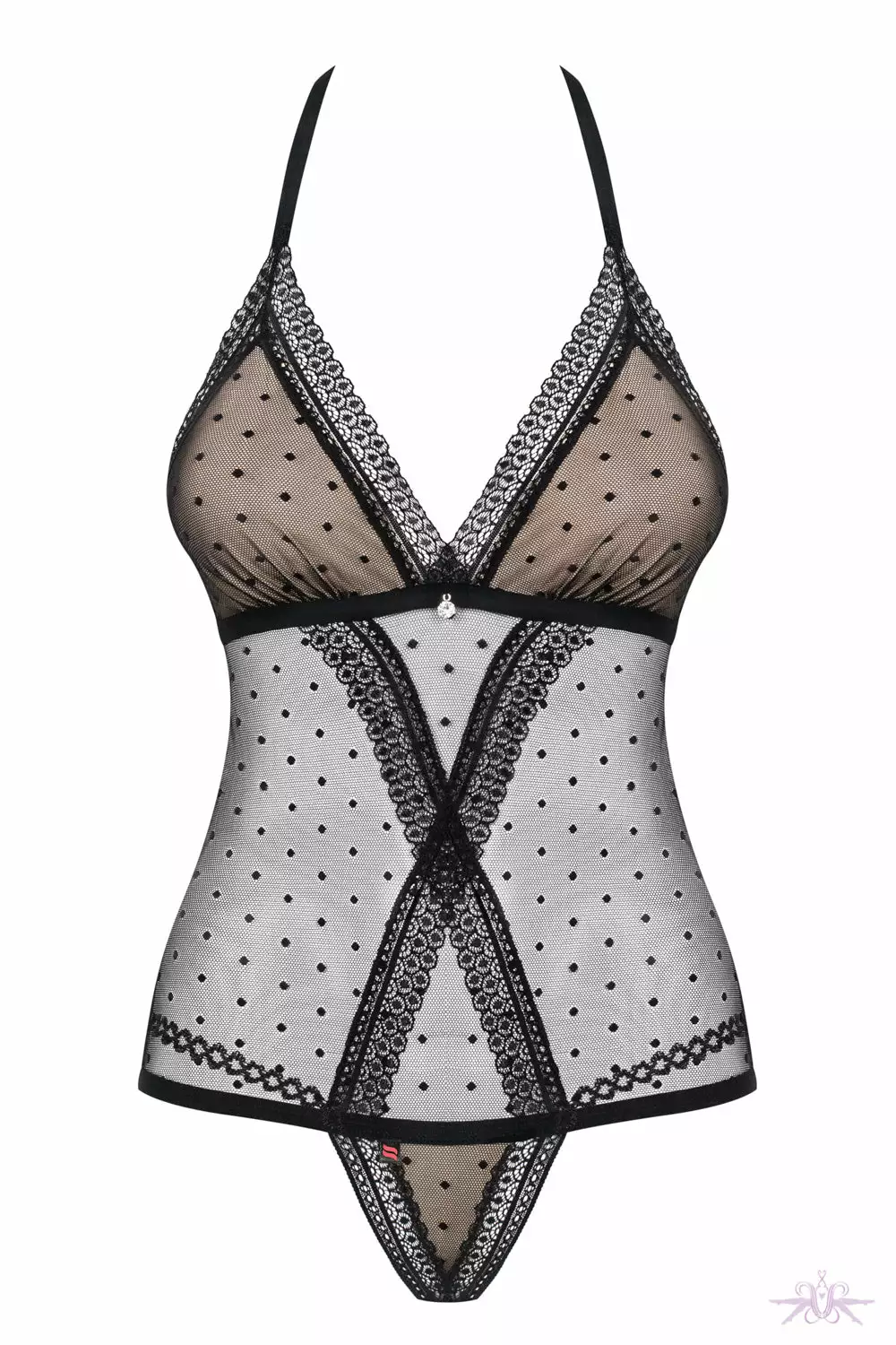 A gorgeous black bodysuit with tempting polka dot design. It has lovely soft cups and a halter neck. It has adjustable fitting for the perfect fit and adds to the fact that this is so comfortable and soft to wear.