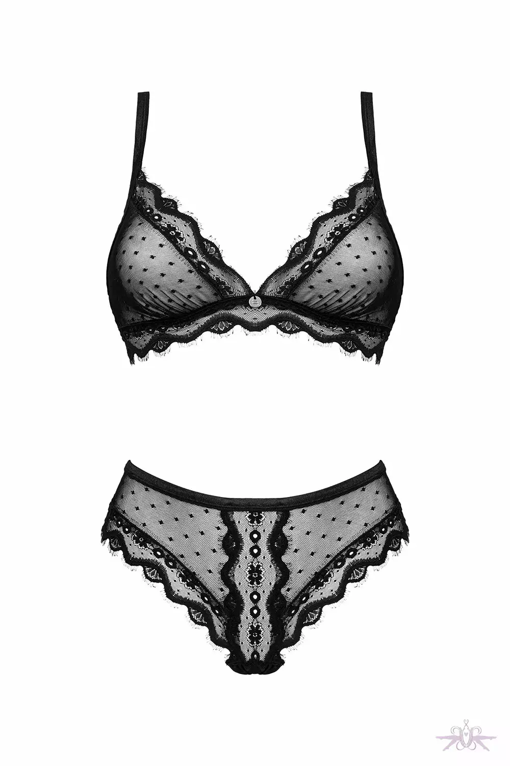 A sensual lingerie set that will work equally well underneath an everyday outfit and a romantic night ensemble. It’s comfortable, and incredibly sensual and seductive at the same time. The cut perfectly emphasizes all assets of the figure, and the translucent, subtle lace delicately tempts and attracts attention.