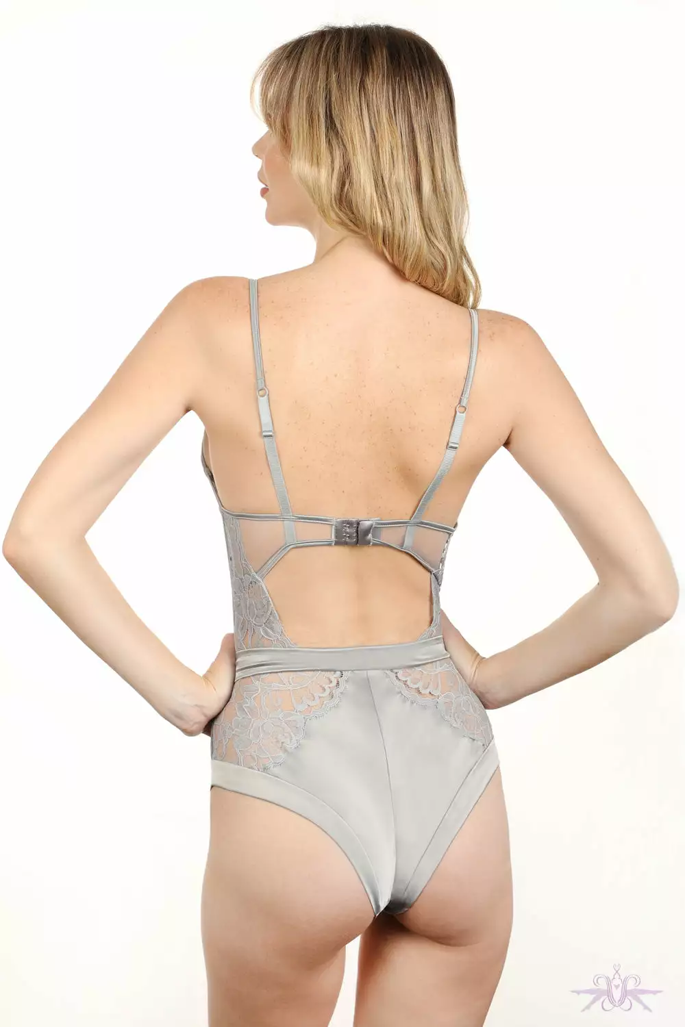This luxurious bodysuit from Prelude Milano is stunning with its satin and lace details. The bodysuit has decadent sheer panelling and the lace panels to the front and rear are so glamorous and make this piece of lingerie a real must have. the underwired bra supports and enhances the bust adoringly and the back fastens and adjusts in the usual way. Swarovski crystals on the satin waistband at the front which add glamour and decadence.