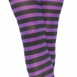 LEG AVENUE Black And Purple Striped Pantyhose